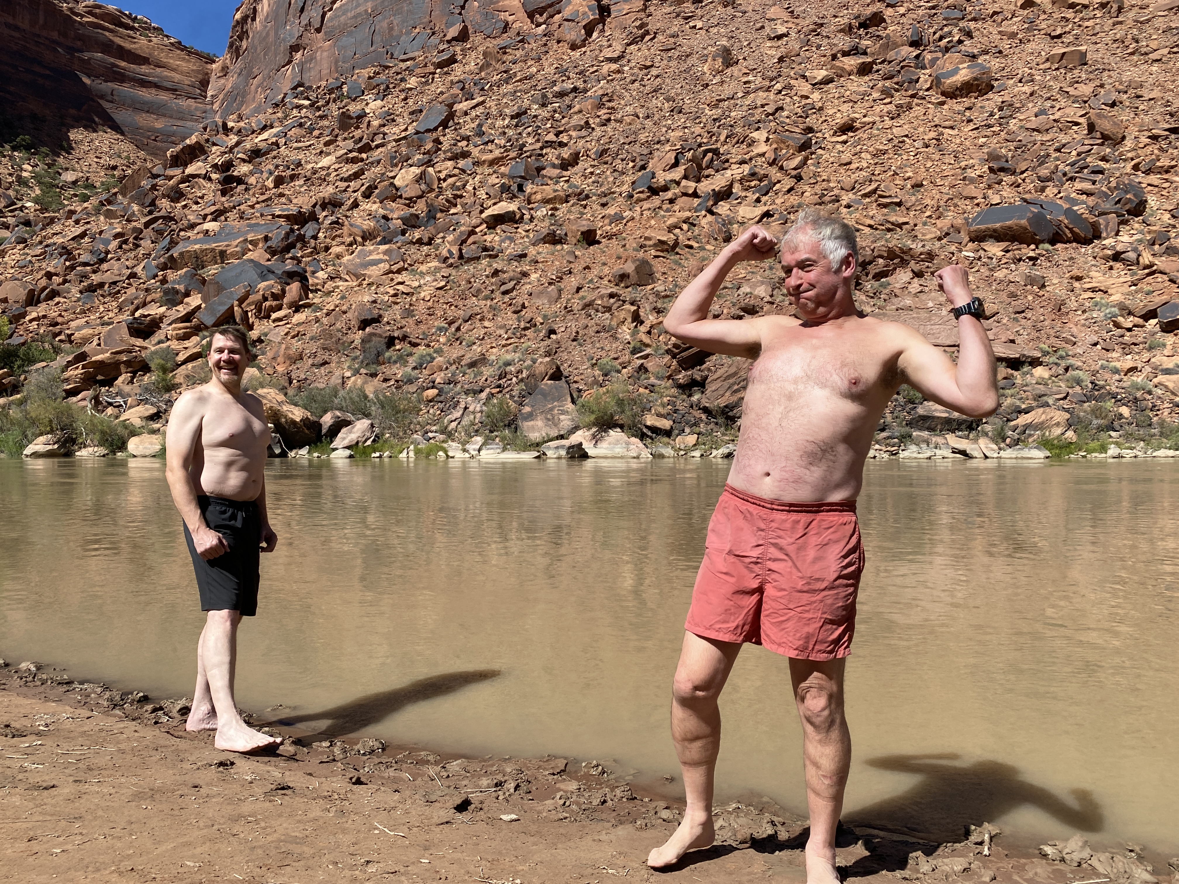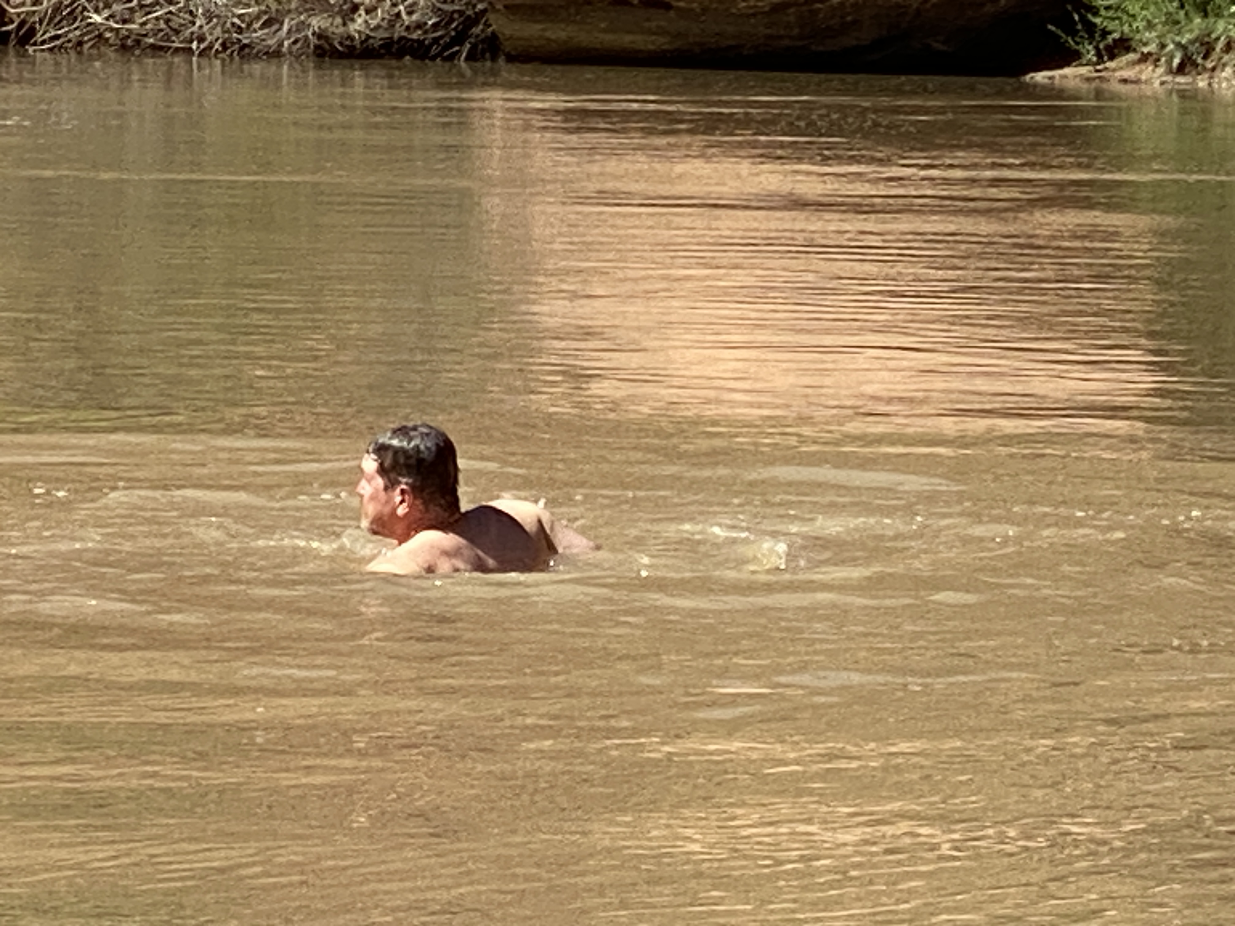 As we continued it got hot. Christian wanted to check off the box of having swam in the Colorado River. We found a spot by the river and he and Graham went for a dip. We had expected the river to be cold, but it was not. But what it was was filled with sediment.
