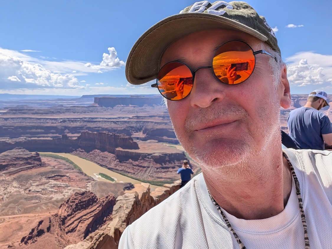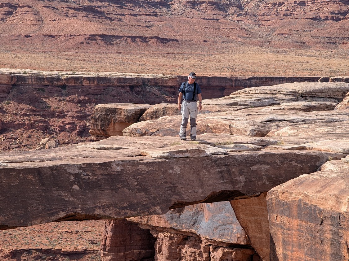 Once we got to the top of the mesa we ate our sandwiches we had bought in Moab and brought for lunch, relaxed , and enjoyed the view of the canyon below. During this week Christian had been working on his selfie technique. In this one he took we all agreed he had achieved maximum selfie.