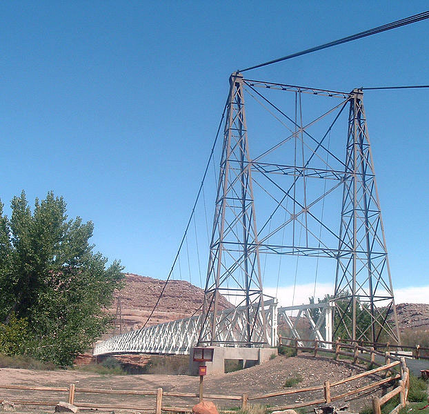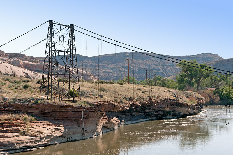 Here is a compilation video Christian edited and made after we got back. You will notice a folk song as the background. It's a song some folk singers were singing one night in Moab at an event celebrating use of public lands. Christian recorded their performance and added it as background music to the video. The song was about the "Dewey Bridge" which was built in 1916 and was an important link across the Colorado River. It was damaged and the wood portion burned in 2008 due to a brush fire, which may have been started by a boy playing with matches. Below are before and after pictures of the bridge. Look for the bridge at the very end of Christian's video as we cross the modern bridge next to it. The suspension cables and metal towers are still there.