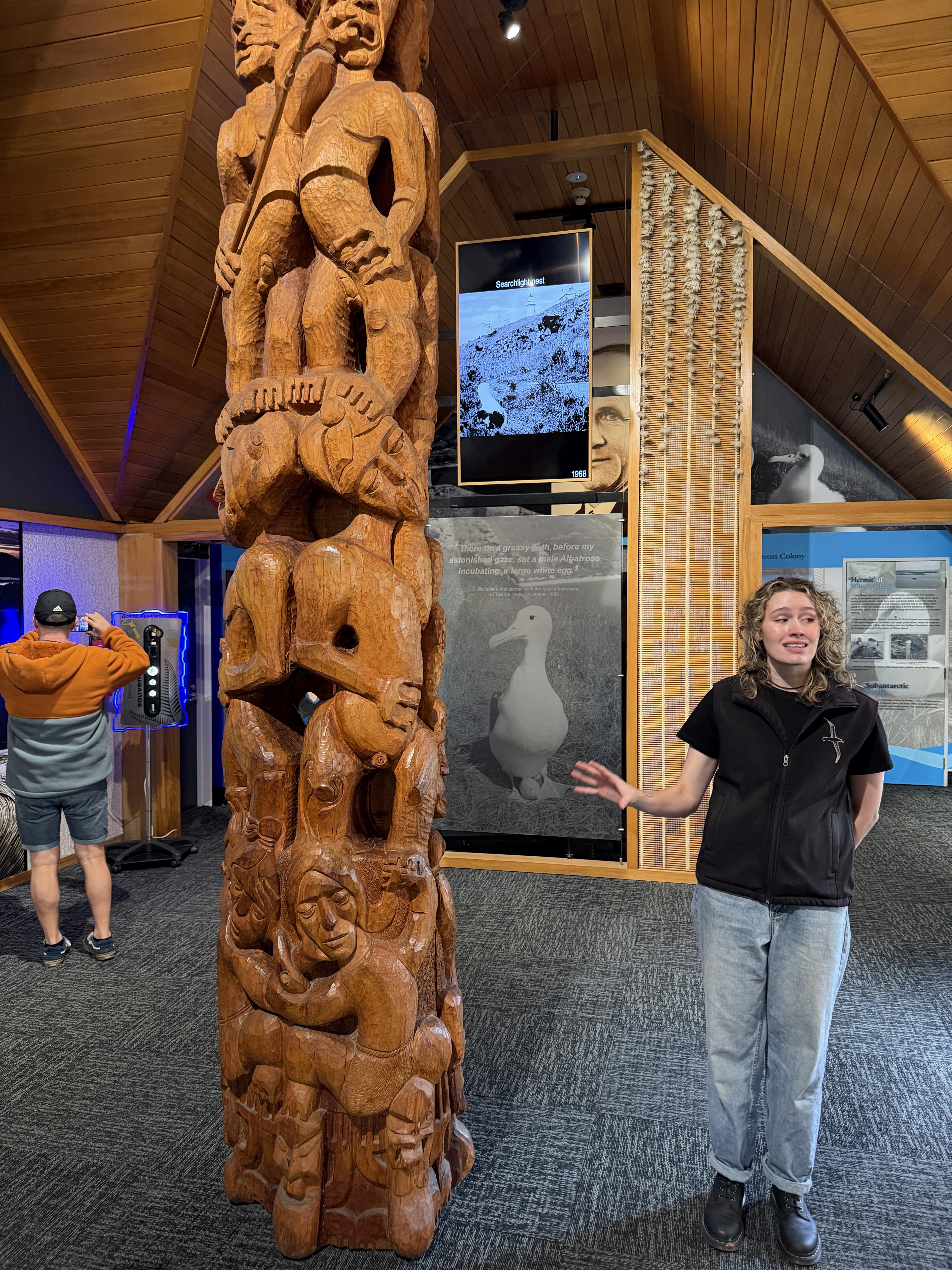 At the tip of the peninsula is a center for the Royal Albatross, where they study them, and we had booked a tour which included a walk to the viewing area. It was well worth it. We learned a lot about these huge birds, which are the third largest flying birds in the world. For example, after hopping and flapping its wings in the wind for weeks on the edge of the cliff the young Albatross takes its first flight, and immediately heads to South America, which takes about 12 days of soaring and gliding. That's an amazing thing to embark on after first taking to the air. Here are some pictures from the museum and from the observation area.