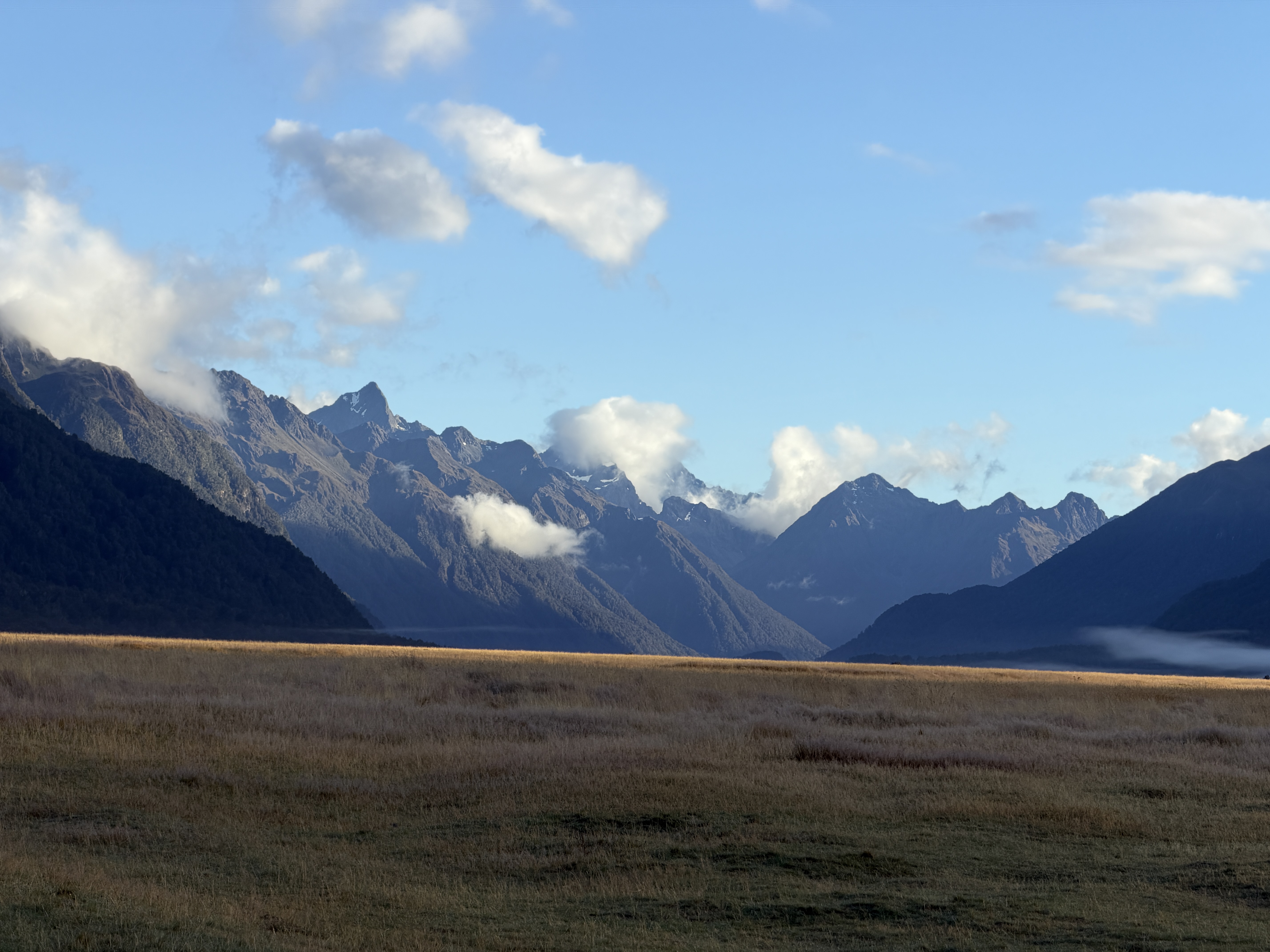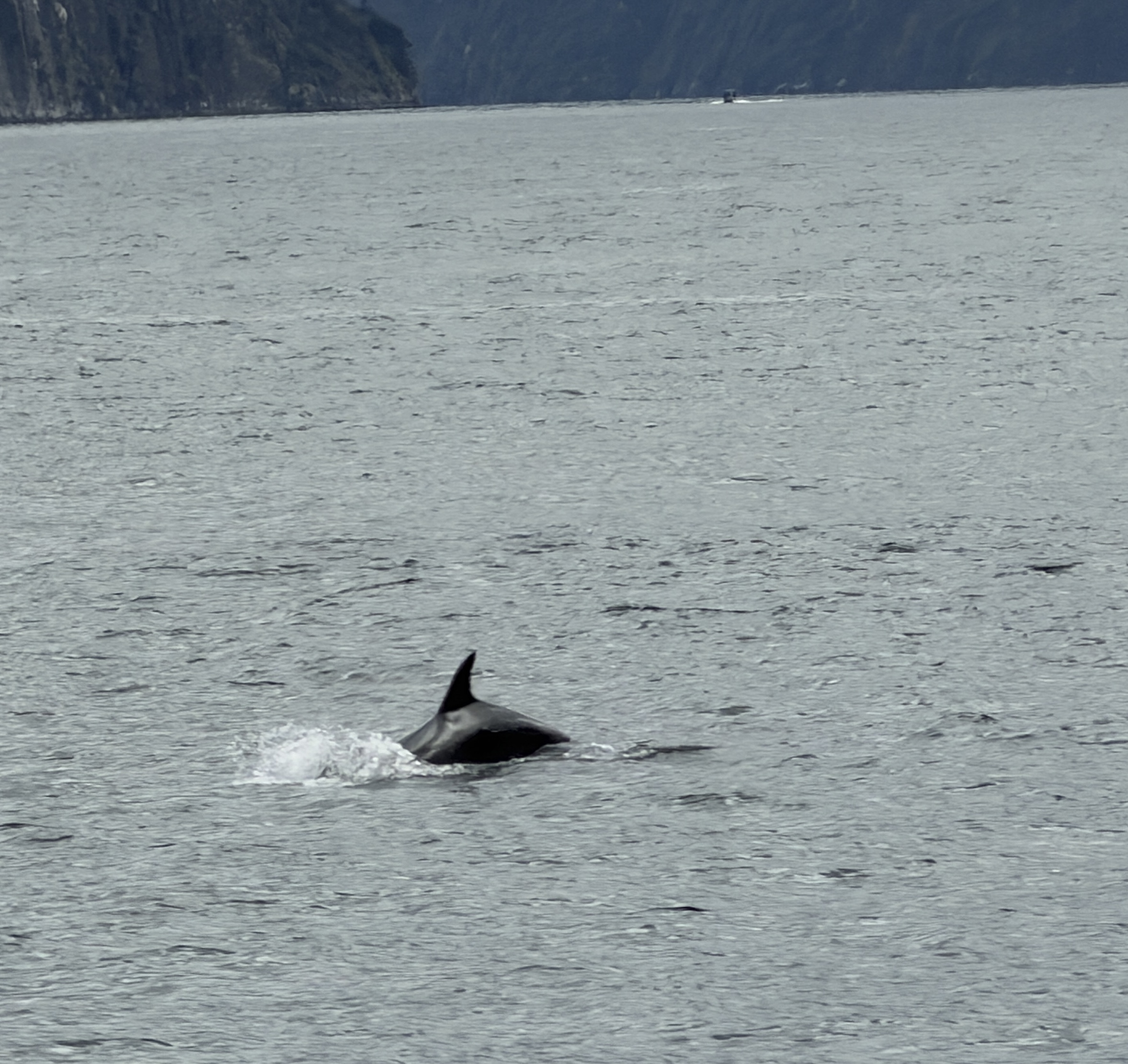 Today we drove up to Milford Sound, which is in Fiordland National Park. The sound is a Fiord. We headed out at 8am to get there in time for our two hour cruise of the sound. It was overcast with low clouds and sometimes fog. Here is an early morning picture as we began to climb and approach the mountains.